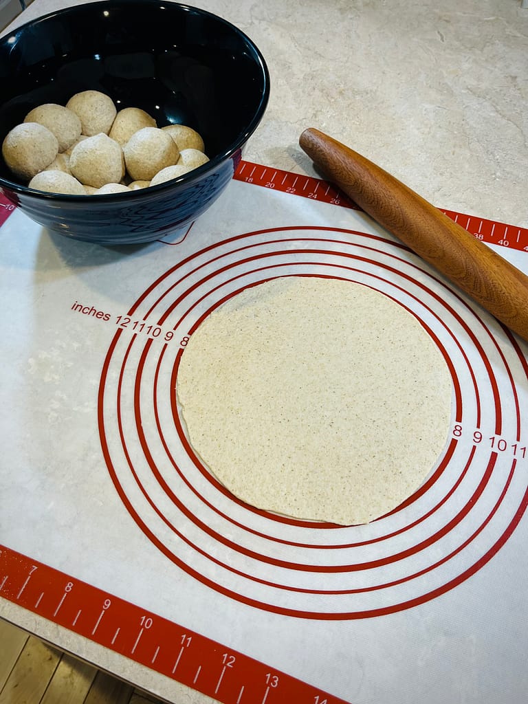 This recipe is designed specifically for fresh milled flour. You can use this same recipe with store bought flour. The only adjustment you would make is to the resting times. Fresh milled flour needs extra time for the gluten to develop and relax. Store bought flour has the wheat bran and germ sifted out. This process removes the natural nutritional content from the grain. Additionally, oxidizing agents and many other additives have been added to commercial flour that fresh milled flour does not have. However, one of the many benefits to fresh milled flour is that it’s packed with 40 of the 44 essential nutrients required to sustain human life. Commercial flour is high in carbohydrates with very little nutritional value. If you choose to use store bought flour, you can reduce each rest time down to 20 minutes. You’ll get tortillas much faster, but you won’t have the nutritional value that fresh milled flour offers. Fresh milled tortillas can absolutely be soft and pliable, but they need time. The process is not hard and most of the time is resting. This rest time makes it easy to work them into your day. I usually start them in the morning. Then, work through the other activities of my day while the dough is resting. Finishing them just in time for dinner.